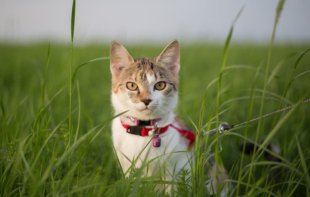 1. Cumpărați un ham special care să fie comod și o lesă ușoară cu închidere sigură. Nu folosiți o zgardă pentru că pisica poate să scape. Este bine ca atunci când trageți de lesă presiunea să fie aplicată pe piept și nu pe gât. În comerț se găsesc, de asemenea, „veste” pentru pisici din care este imposibil ca animalul să scape și care au lesa atașată la șoldul felinei, pentru confortul patrupedului.