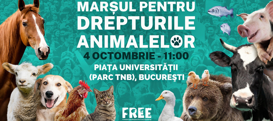 Sâmbătă, 4 octombrie, va avea loc la București cea de-a treia ediție a Marșului pentru Drepturile Animalelor, organizat de F.R.E.E. Participanții sunt așteptați începând cu ora 11:00, în Parcul Teatrului Național, de unde se va pleca în marș spre Piața Victoriei.