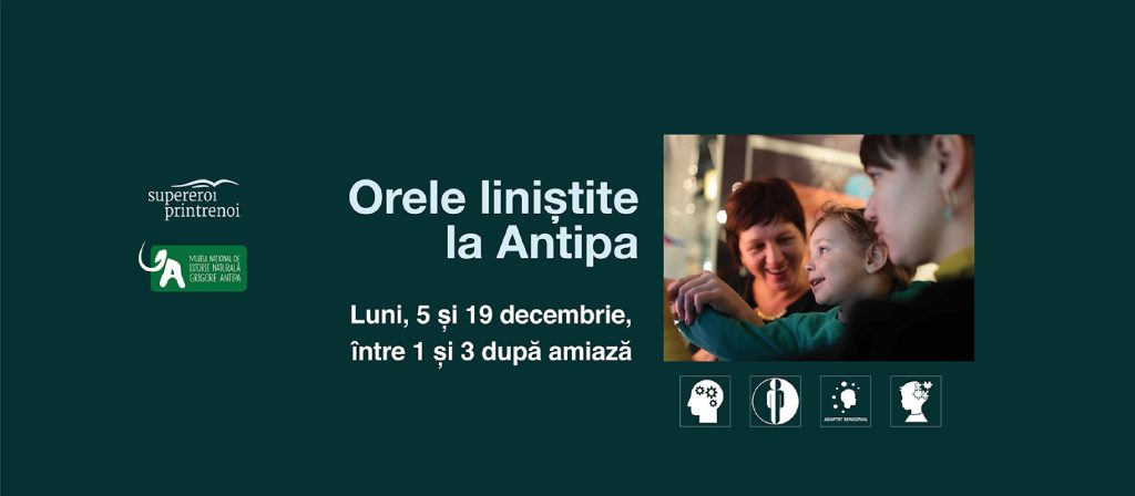 Muzeul Național de Istorie Naturală „Grigore Antipa” continuă programul „Orele liniștite” și în luna decembrie. În cadrul evenimentului, organizat în parteneriat cu asociația Supereroi printre noi, persoanele cu dizabilități de procesare senzorială și neurodiverse pot vizita expoziția permanentă a Muzeului într-o atmosferă prietenoasă nevoilor lor.
